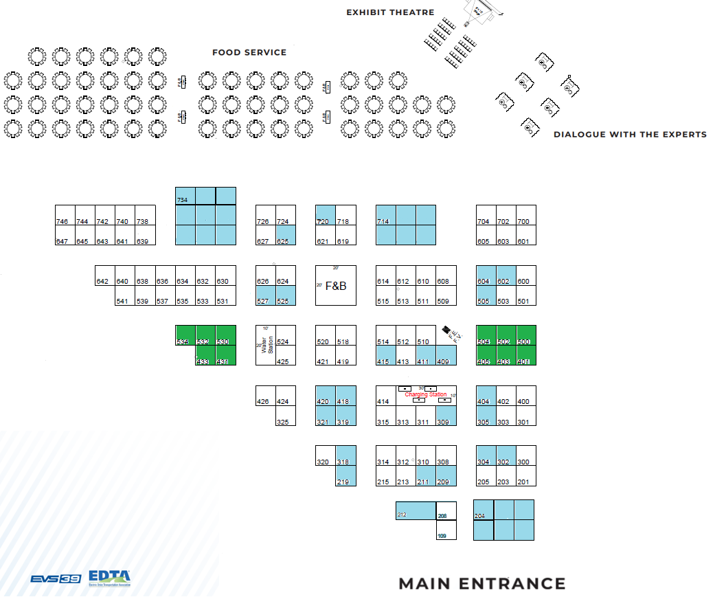 The exhibit space diagram in the Exhibitor Services Manual shows the floor arrangement of space. Dimensions and location of each booth are believed to be accurate but only warranted to be approximate.